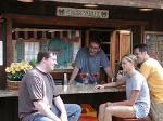 | Take The Rails to The Ales "Scene From An Imaginary Western The Stirling Hotel--The Tavern On Main" Stirling is a section of Long Hill Township and is located along NJ Transits Gladstone Branch west of Summit, between Gillete and Millington. When you leave the station you want to walk to the left down Main Avenue and cross Railroad Street. If you take a good look at the front of the building and use your imagination, it looks like a tornado could have picked this building up in the old west and put it down safely right on Main Avenue without a scratch. You can imagine some horses tied up out front drinking water and maybe some tumbleweed blowing down the street. When you walk through the front door and turn left you will see the big moose sticking out from the wall. There are a few old rifles and a sword decorating the walls behind the bar, and a wagon wheel chandelier above the ten tap handles. If you look around the place you can imagine gunslinging cowboys breaking out in a bar fight, whiskey bottles cracked over the head, chairs flying left and right. Okay that's enough imagination lets go back to the tap handles under the wagon wheel. After all this is an article for beer enthusiasts, and this is a great place to go for a beer or two (or three, remember we left the car at home and took the train so we can have a little more fun this time out!!). Always on the left is the Guinness tap, and this place pours the perfect pint (22 oz that is). They take pride in how they serve it, and correctly let it settle before filling it to the top. To the right of that are the Smithwicks and Miller Lite taps for those with a lighter taste for beer. Stop there--These are the only taps that stay the same all year, the other seven represent seven different styles of beer that constantly change brewery when kicked. First one is Troegs Sunshine Pils. Pilsner and crystal malts give this a crisp taste accentuated by saaz,mittlefrueh and hallertauer hops. Refreshingly delicious at 5.35 ABV. Next to the right is Dogfish Theobroma. Brewed with Aztec cocoa powder, cocoa nibs, honey, chilies and anatto this was a rare treat. Moving on, next was Blue Point Rastafarrye.A toasty, roasty ale with a cool rasta taphandle. Weihenstephan Weiss is next in line. These guys were growing hops in the year 768 AD, and in 1040 AD were granted the right to brew beer in Bavaria. Wow that's amazing. Then from Left Hand brewery in Longmont Colorado the light and refreshing Ju Ju Ginger hopped with centennial, US golding and sterling hops and gently balanced with a crisp ginger flavor(mmm tasty). Then we find the famous Corsendonk Abbey Pale,a great belgian that needs no description. And last, but not really last, and certainly not least, the great Stone IPA. At 6.9 abv and hopped with columbus, chinook and centennial hops, this stands out as one of my favorites of the style. Now you may ask why it was last but not really last . The answer is easy. If you walk to the back and to the right of the restrooms you will find a doorway that leads to an outdoor bar with five more taps to choose from!! Unfortunately one is a repeat, Miller Lite, so they can serve the outdoor tables without having to run inside too many times. That leaves us four. First in line Brooklyn Lager. A Vienna style lager that is dry hopped and tasty. Brooklyn lager uses hallertauer, mittlefrueh, vanguard, andcascade hops and at 5.2 abv is a good session beer. Next up, Dales Pale ale from Oskar Blues Brewing. You may recognize the beer can on tha tap handle. At 6.5 abv it is heartily hopped and one of my favorite pale ales. If you ask me it's closer to an IPA than some IPAs are. Victory Prima Pils is next, and this is another great Pennsylvania pils. Very tasy indeed ! Our last beer to choose from comes from Vermonts Long Trail Brewery-Belgian White. This is a refreshing wit styled beer and at 4.7 abv you can enjoy a few. The outdoor bar remains open into the fall, until old man winter comes and closes it down . Drop in for some Octoberfests and Autumn Harvest Ales befor winter arrives. I'm sure this place will have some great ones in their line up. In bottles they offer Duvel, Corsendonk Pale and Brown, Chimay Red, Sam Smith: Pale, Taddy Porter, and Oatmeal Stout, Anchor Steam, Anderson Valley Amber, Northcoast Red Seal and Rogue Dead Guy. Featured bottles are the Blue Point Summer Ale and Flying Fish Exit 11. Being a vegetarian I was glad to see six different salads, four homemade veggie burgers, grilled portabello sandwich, macaroni and cheese, cavatelli and broccoli, eggplant parm and an excellent bar pie (a meal in itself) on the menu. However Stirling Hotel is best known for it's Burgers, Steaks and Seafood dishes. You can check out their menu at www.thestirlinghotel.com. They are closed on mondays, and if monday is a holiday they are usually closed on sunday that weekend. Call themat 908-647-6919 to be sure. They are located at 227 Main Ave about 1/10 of a mile downhill from the train station. The staff is great and service is top notch. A wonderful atmosphere, and fun beer crowd. Definately worth the trip. I rate this wonderful tavern five out of five engines, and since they have an outside bar I think they deserve a caboose as well !!! I'm sure I'll be back a few times to see what new beers are on tap. Maybe I'll see you there. Remember to leave the car at home and......Take The Rails To The Ales !!!!!!! |