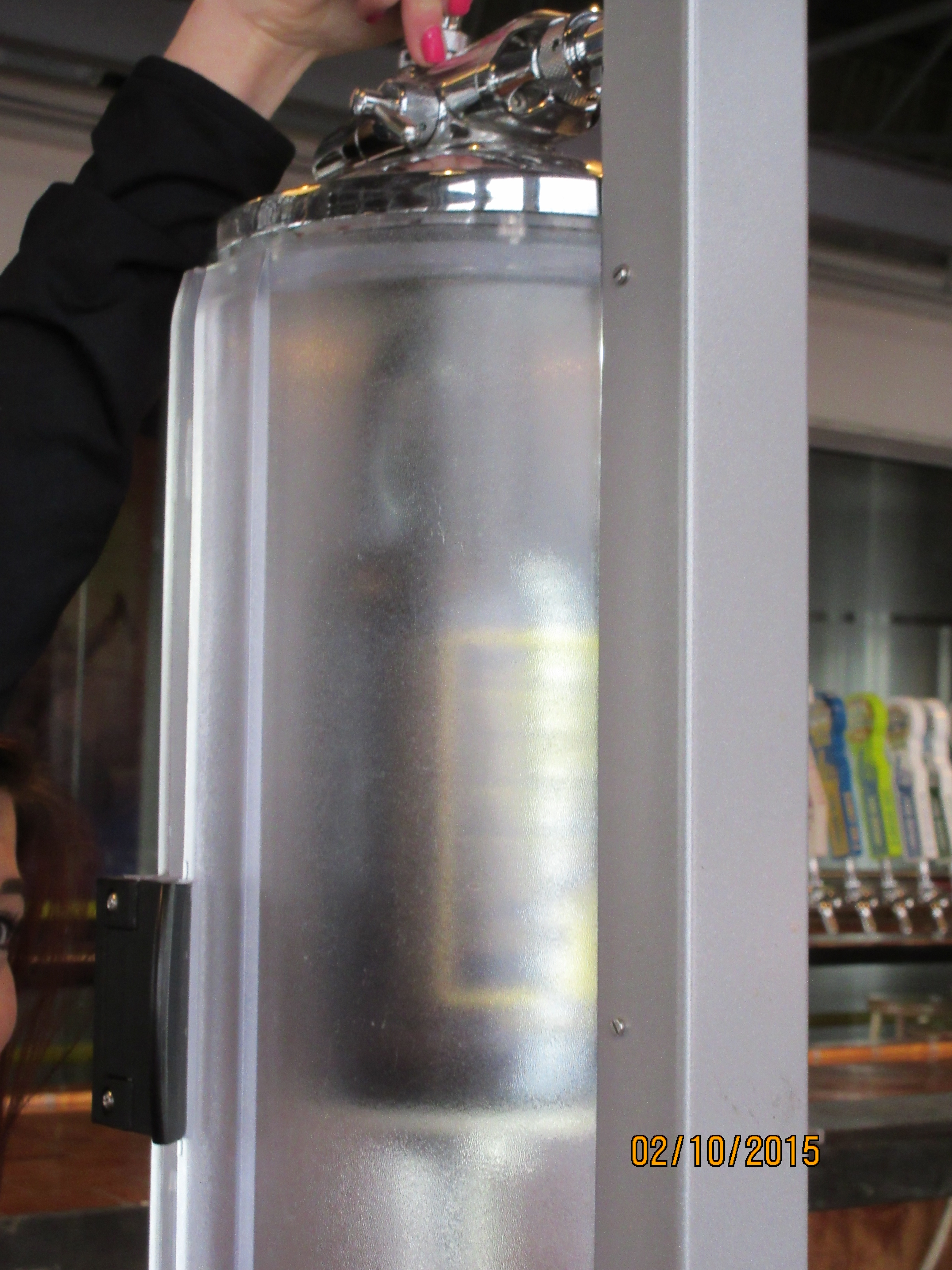 to until a customer walks in with a growler. The tasting room staff opens the cylinder,